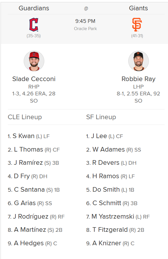 San Francisco ya dieron a conocer su alineación para este duelo frente a Cleveland.